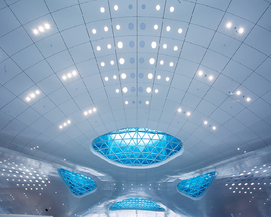 創(chuàng)新性的框受力板不受力結(jié)構(gòu)在試裝環(huán)節(jié)表現(xiàn)出了完美的拼裝效果,試裝板面順滑美觀(guān),最終機(jī)場(chǎng)方欣然采納了鵬泰的設(shè)計(jì)方案,在整個(gè)項(xiàng)目完工后,航站樓穹頂成了整個(gè)機(jī)場(chǎng)最大的吸睛亮點(diǎn),“九葉蓮”在荊州機(jī)場(chǎng)上方盛開(kāi)!